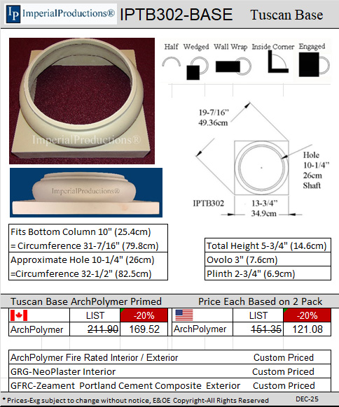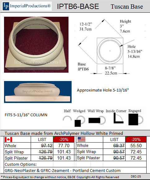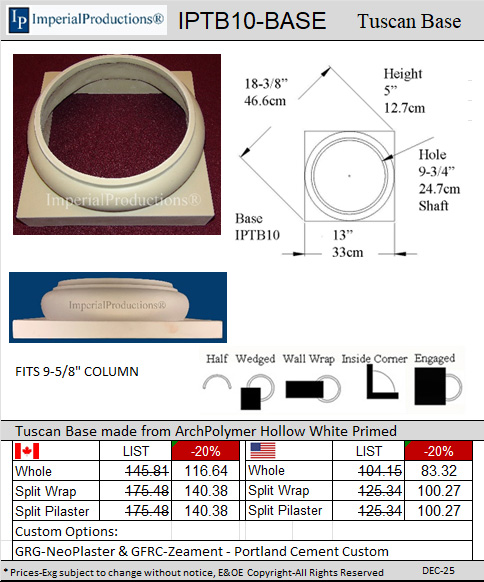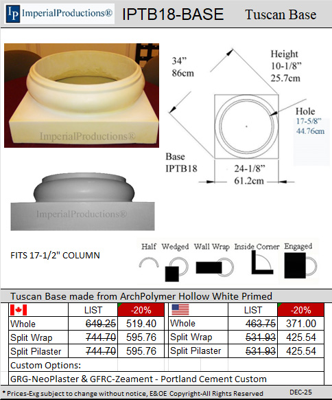are created with new molds. These hollow Tuscan Bases serve as decorative elements to wrap