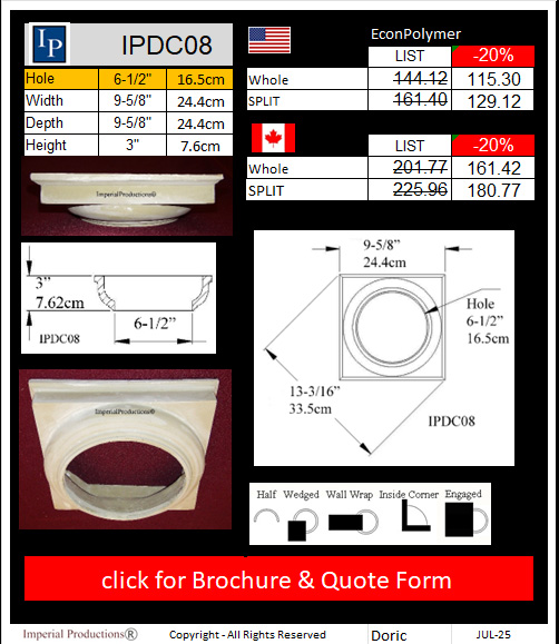 IPDC08-CAP is a Doric Capital molded as 1 piece (Stepped Abacus & Round
