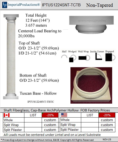 Tuscan Smooth Columns are complete with capitals and bases. The Tuscan Order